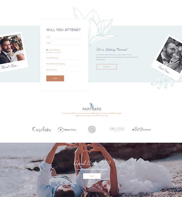 The Aisle comes with multiple predesigned homepages dedicated solely to creating invitations for your special day. Customize each page as per your style, add a timeline, the RSVP form, share your love story, and include the countdown to the big event.